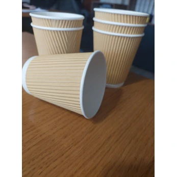 Картонени чаши 12OZ - 220мл Kraft Riple (25бр/стек.)Подходящи за топли и студени напитки.Изработени от висококачествен материал, много удобни с впечатляващ дизайн за любимото кафе, капучино, лат
